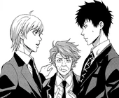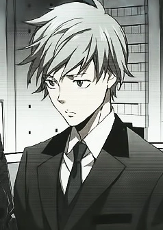 Kurata is a male of average height and a fit build in his 20's. He has messy silver hair and is typically seen in a gray suit and vest with black accents, white dress shirt and gray tie.