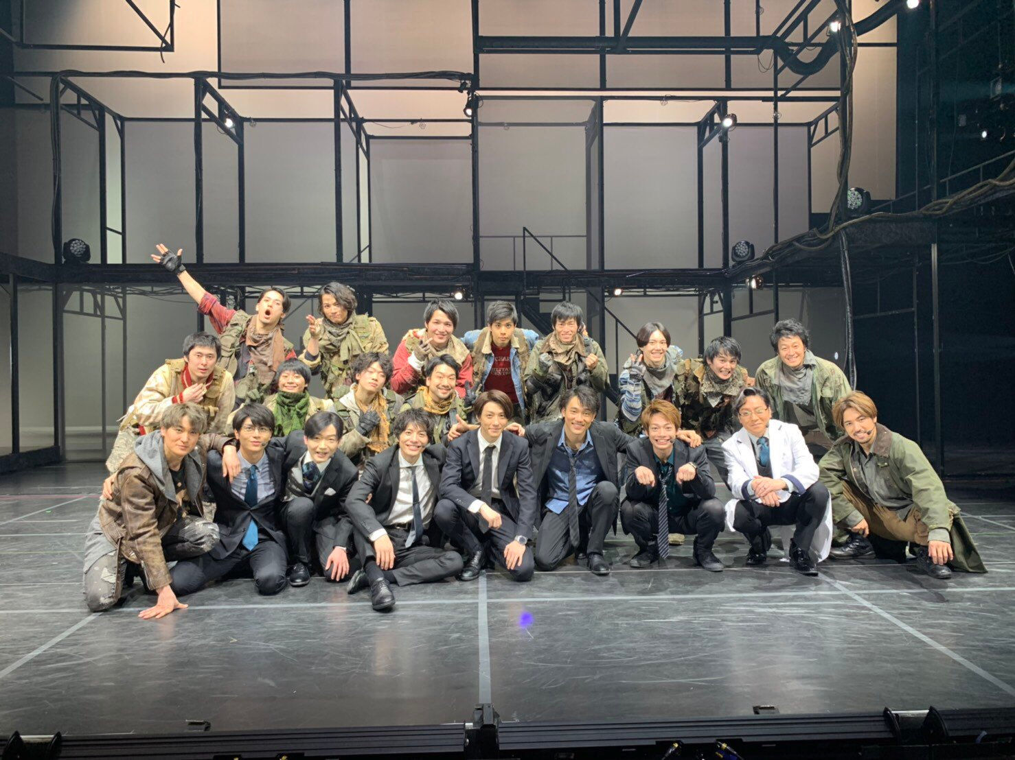 The main cast (front row) and the ensemble cast (back row) of the stage play